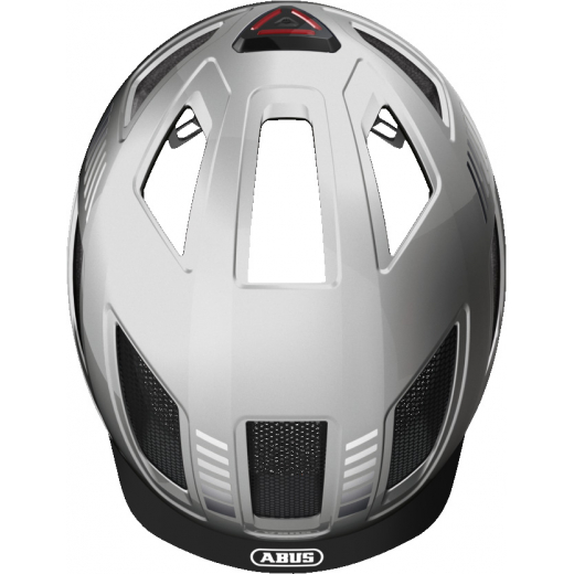 Pensé pour les inconditionnels du vélo, ce modèle Abus intègre une lumière LED triangulaire pour une visibilité à 180° et des éléments réfléchissants pour plus de sécurité au guidon de votre vélo de ville ou VAE.