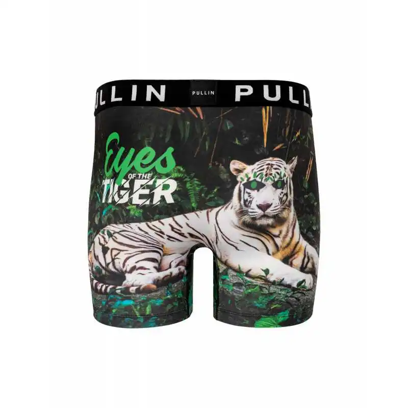 Ce boxer avec son design original, d’un beau tigre aux yeux verts, du vrai Pullin avec des images toujours plus décalés.
